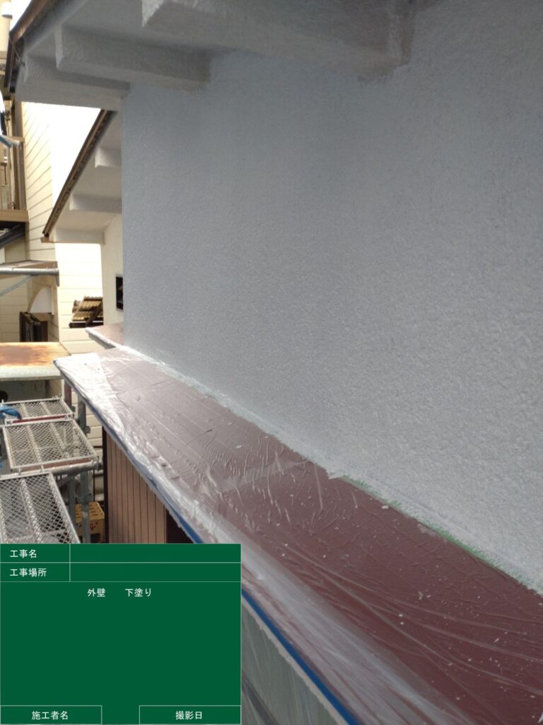 下塗り材や、補修した下地の色の差を完全に隠蔽し、上塗りの色をムラなく均一に発色させるための土台を作ります。